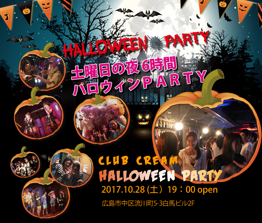 広島最大級 今年のハロウィンイベントは、2017年10月28日! 途中参加・スタンプで出入りもちろんOKです。 仮装して参加OK 雰囲気だけ楽しみにくるのもOK ハロウィンの夜を満喫!